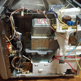 Неисправность: Не греет. Сгорел магнетрон, разрушились ферритовые кольца.